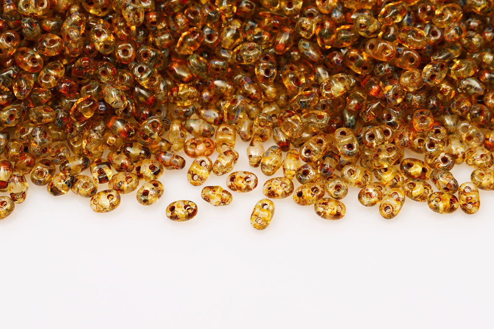 Miniduo 2×4mm Crystal Travertin Dark 2-Hole Czech Beads