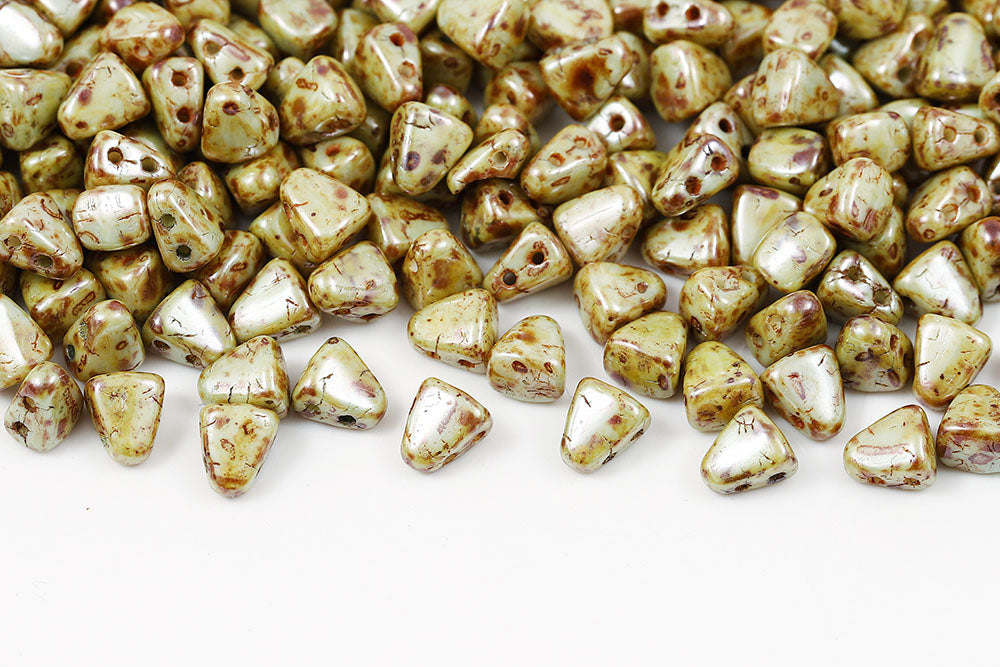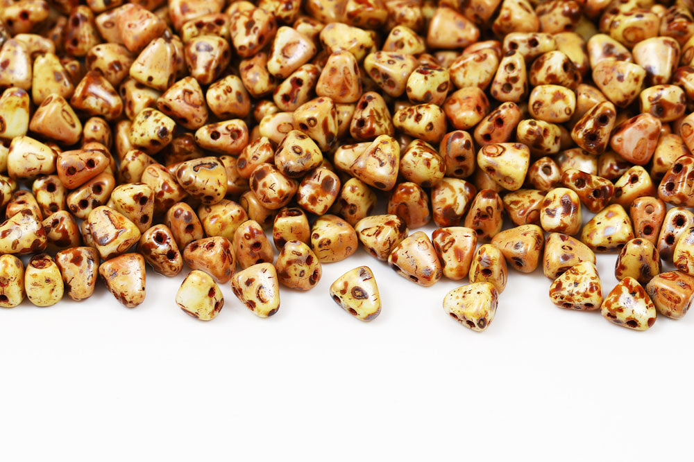 Nib-Bit 6×5mm Chalk Travertin Dark 2-Hole Czech Beads