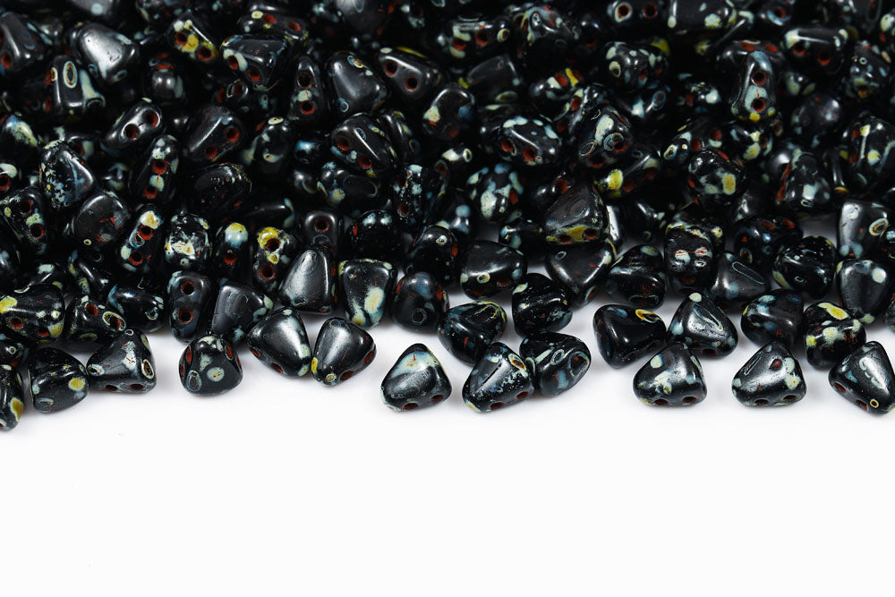 Nib-Bit 6×5mm Black/white Opaque 2-Hole Czech Beads
