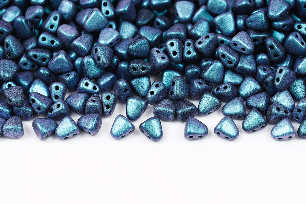 Nib-Bit 6×5mm Metallic Suede Blue 2-Hole Czech Beads
