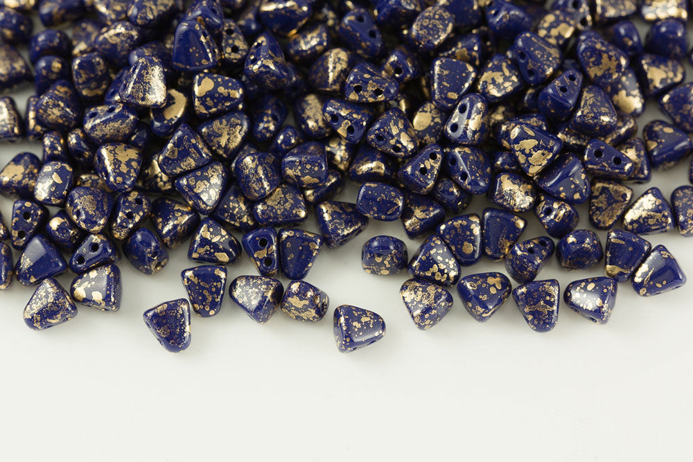 Nib-Bit 6×5mm Gold Splash Navy Blue 2-Hole Czech Beads