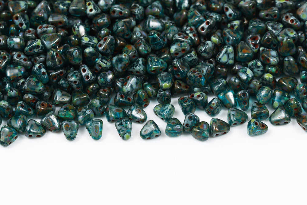 Nib-Bit 6×5mm Polychrome Chameleon Emerald 2-Hole Czech Beads