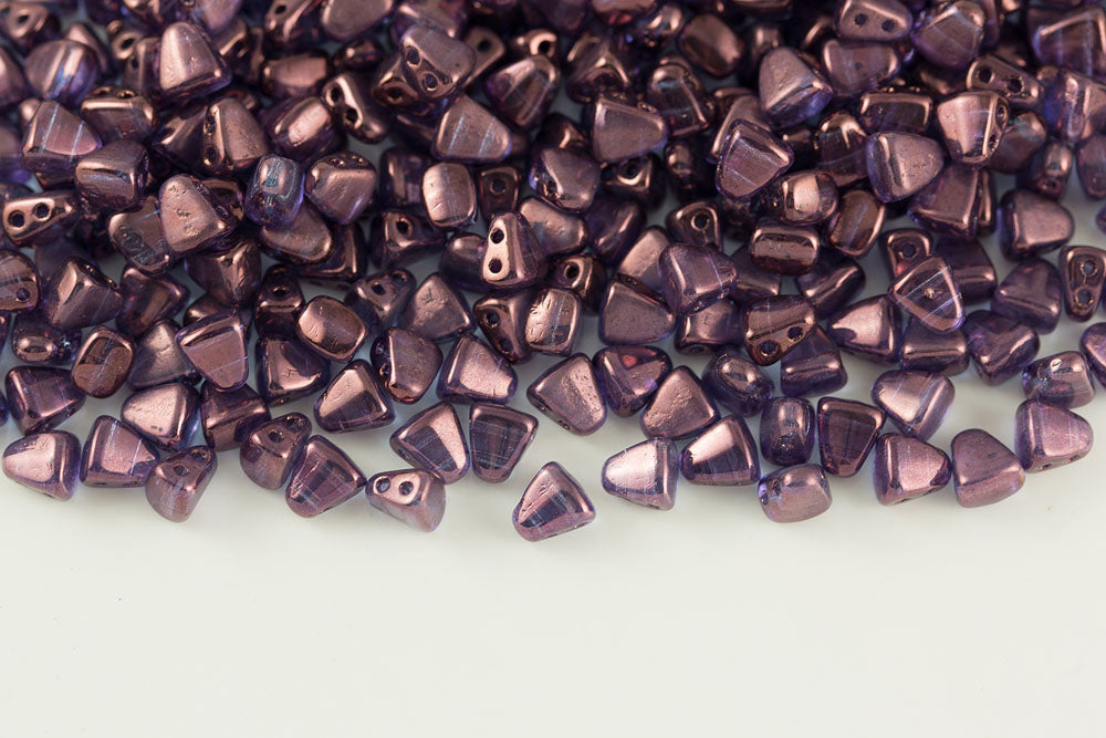Nib-Bit 6×5mm Metallic Suede Purple 2-Hole Czech Beads