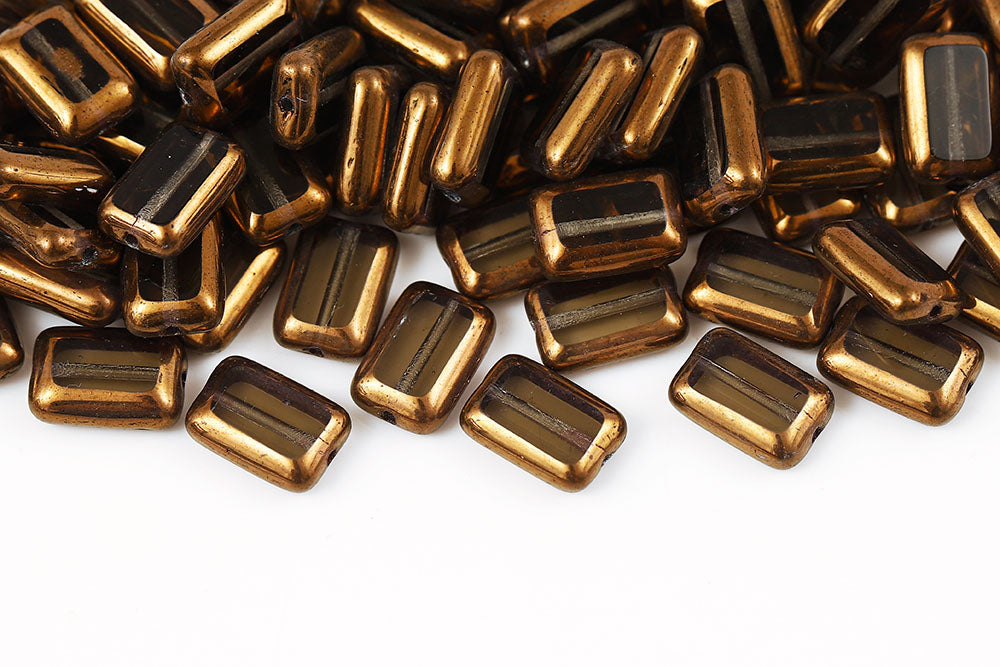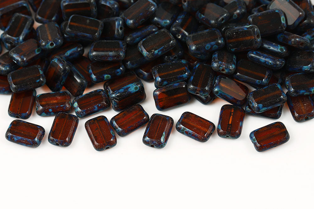 Rectangle 12×8mm Dark Topaz Travertin 1-Hole Czech Glass Beads