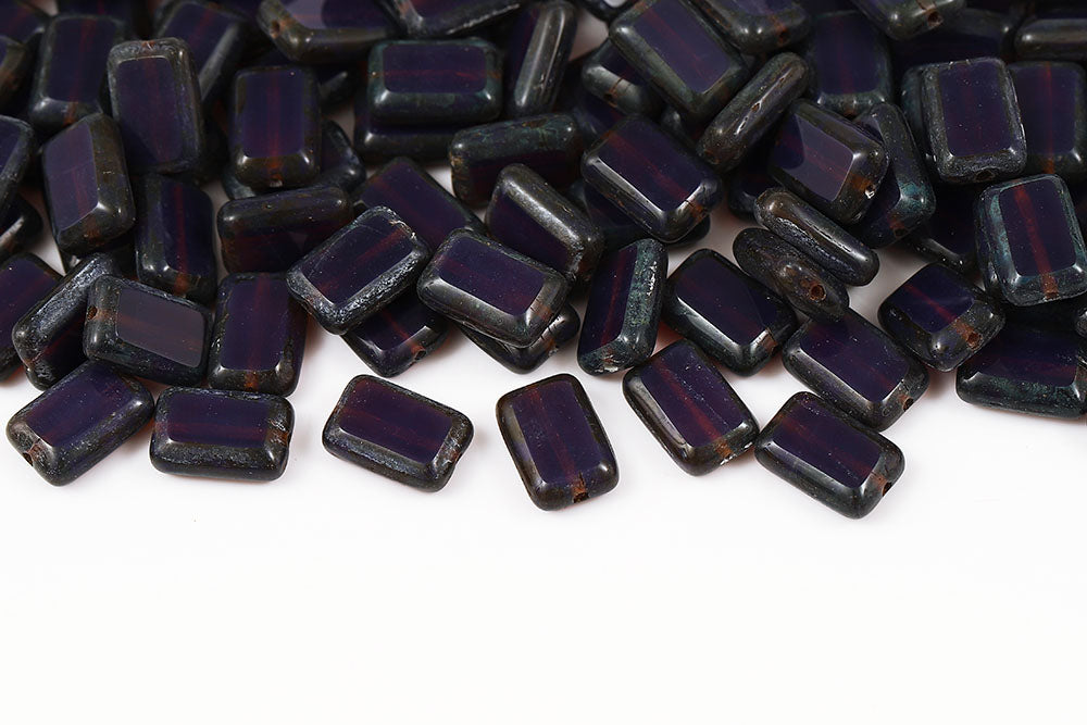 Rectangle 12×8mm Jet Violet Luster 1-Hole Czech Glass Beads