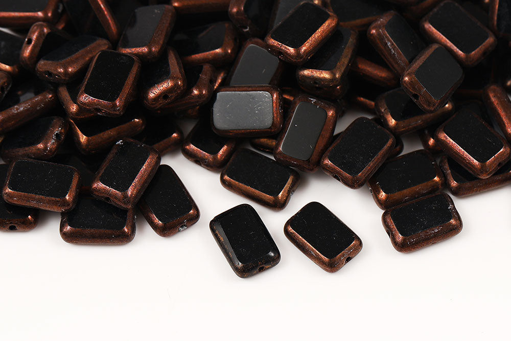 Rectangle 12×8mm Jet Travertin 1-Hole Czech Glass Beads