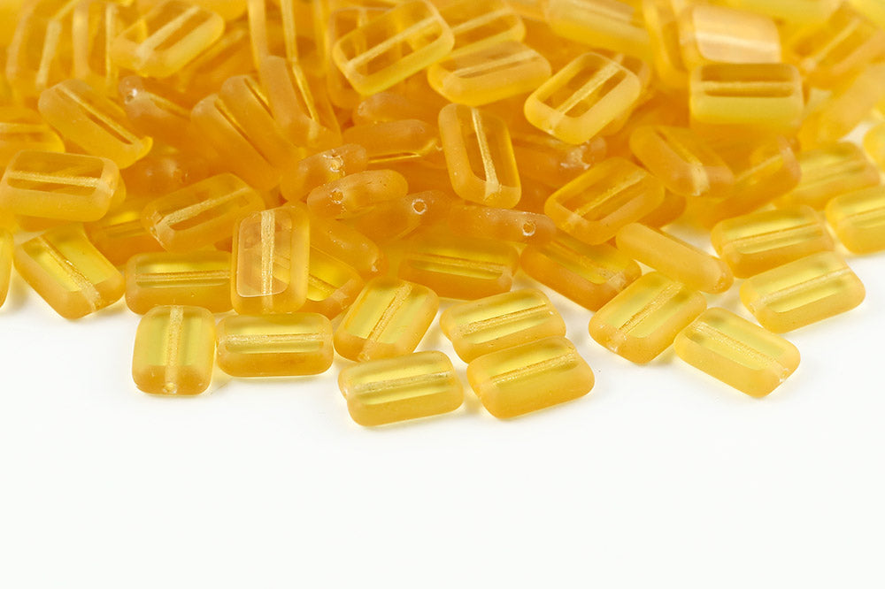 Rectangle 12×8mm 1-Hole Lt.Amber Matt Czech Glass Beads