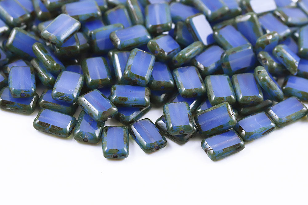 Rectangle 12×8mm Opal Blue Travertin 1-Hole Czech Glass Beads