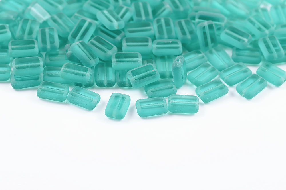 Rectangle 12×8mm Aqua Matt 1-Hole Czech Beads