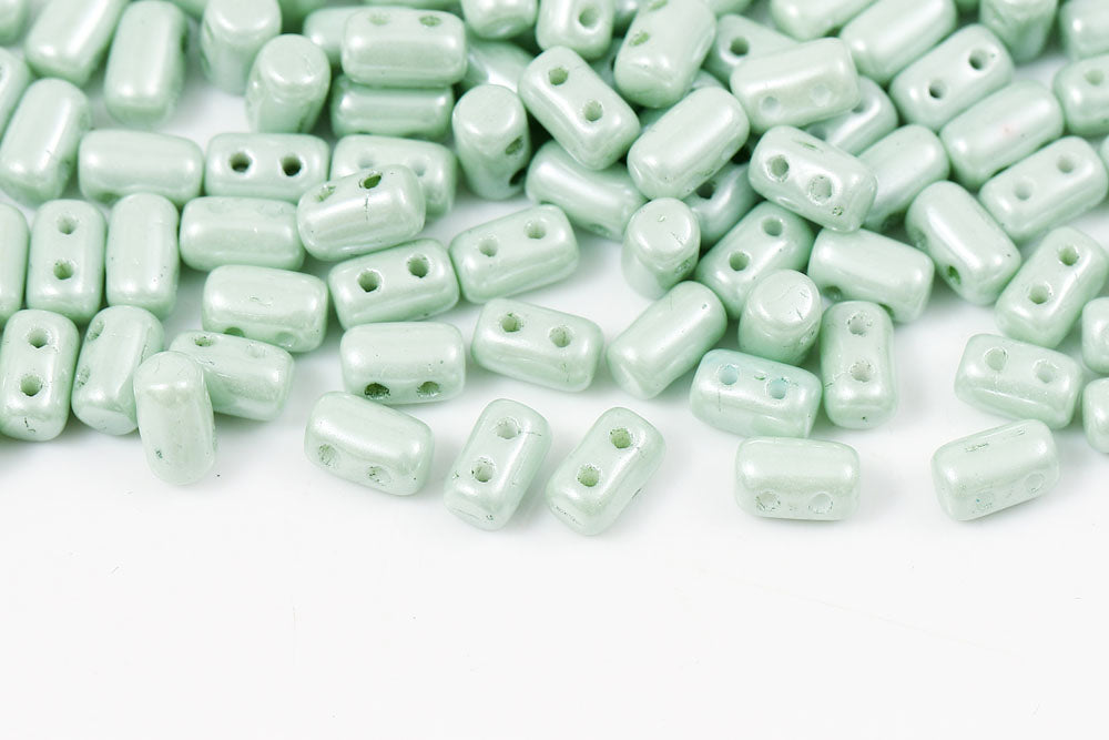 Rulla 5×3mm Chalk Light Green Luster 2-Hole Czech Beads