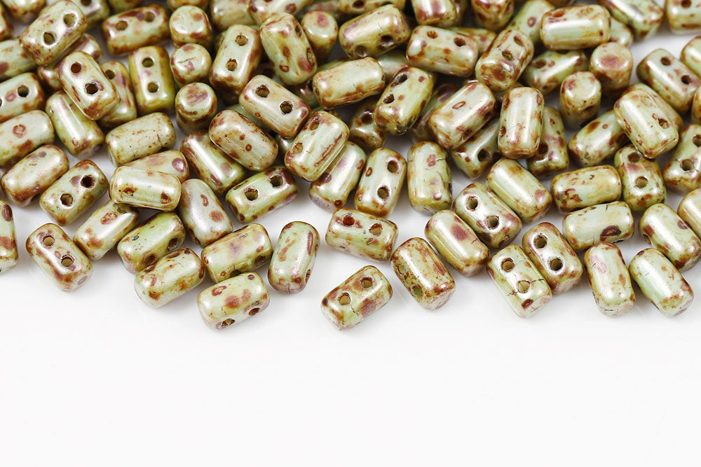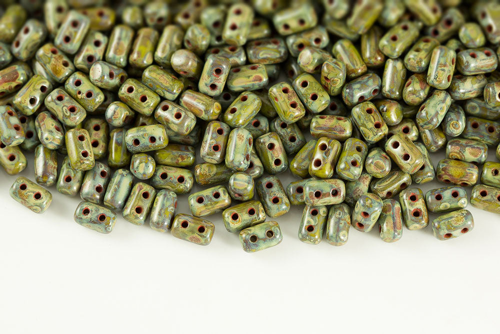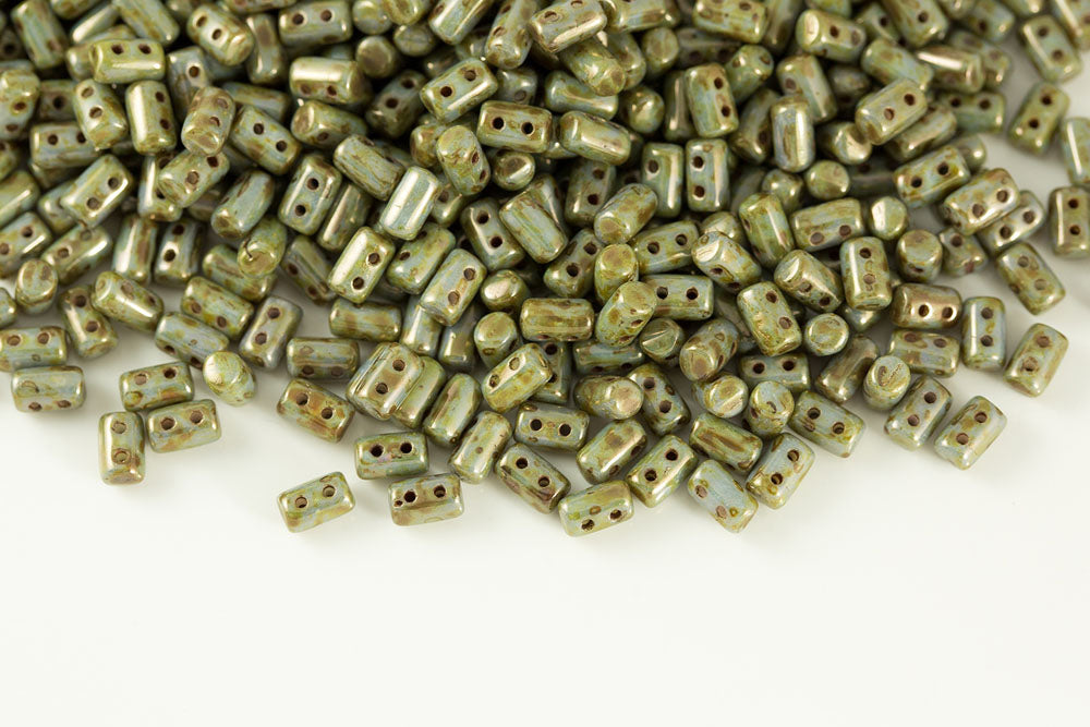 Rulla 5×3mm Olivine Travertin Dark 2-Hole Czech Beads