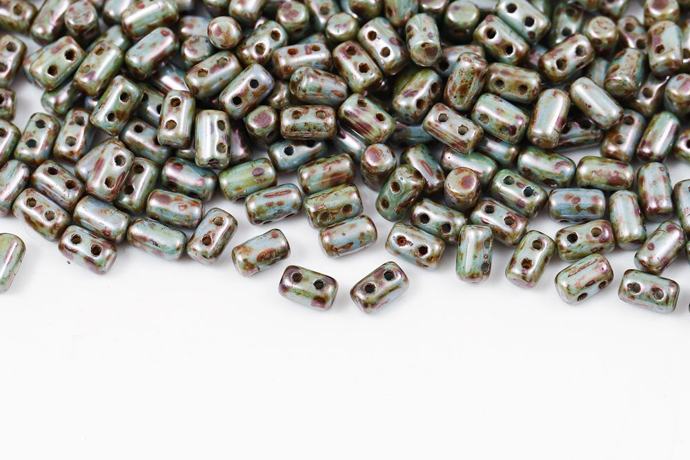 Rulla 5×3mm Olivine Travertin Dark 2-Hole Czech Beads