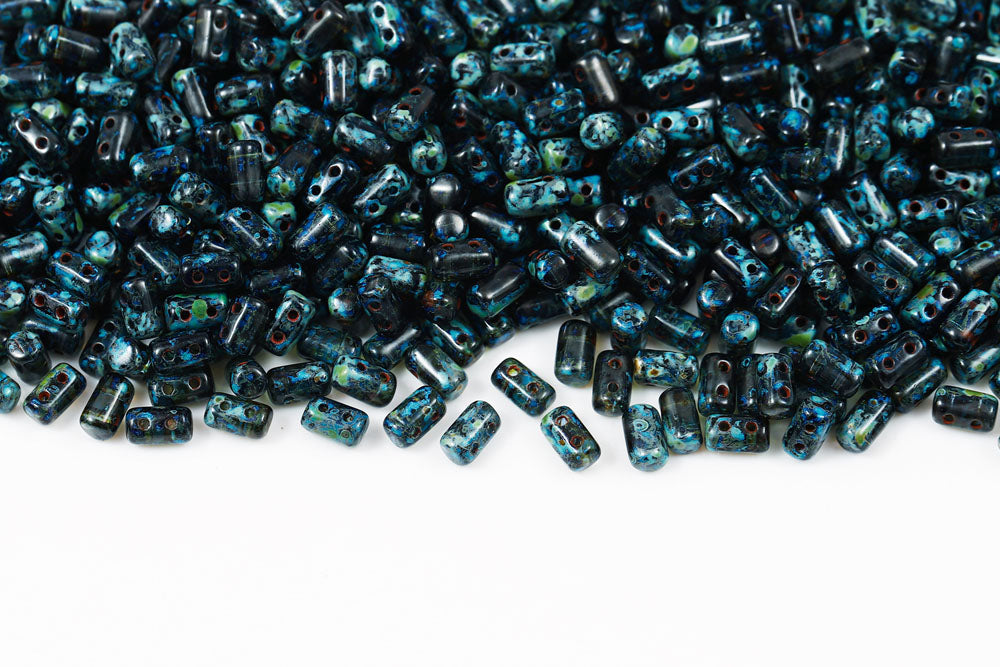 Rulla 5×3mm Sapphire Travertin Dark 2-Hole Czech Beads