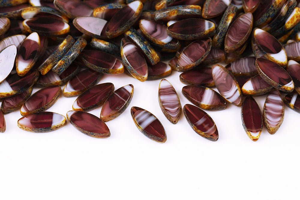 Ship 18×7mm Amethyst Chalk Mixed Travertine 1-Hole Czech Beads
