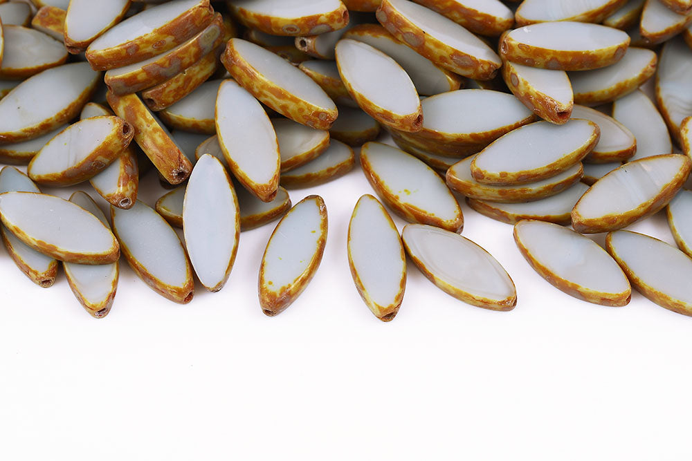 Ship 18×7mm Chalk Travertine 1-Hole Czech Beads