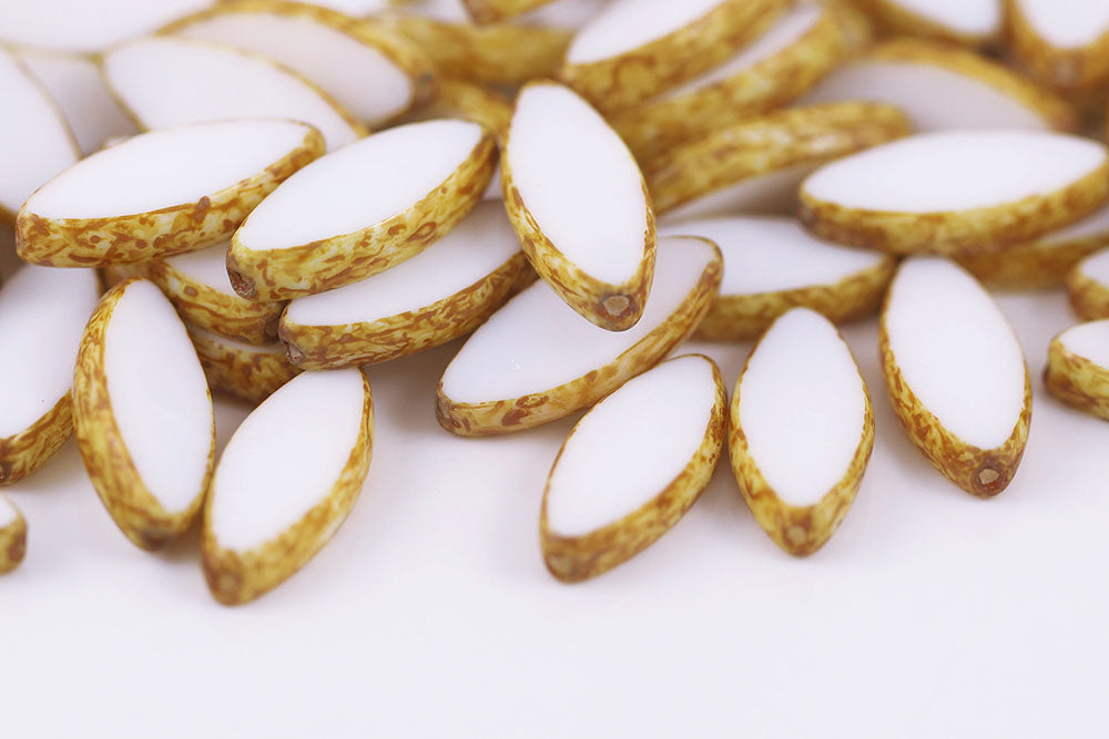 Ship 18×7mm Silver Splash Chalk Mixed 1-Hole Czech Beads