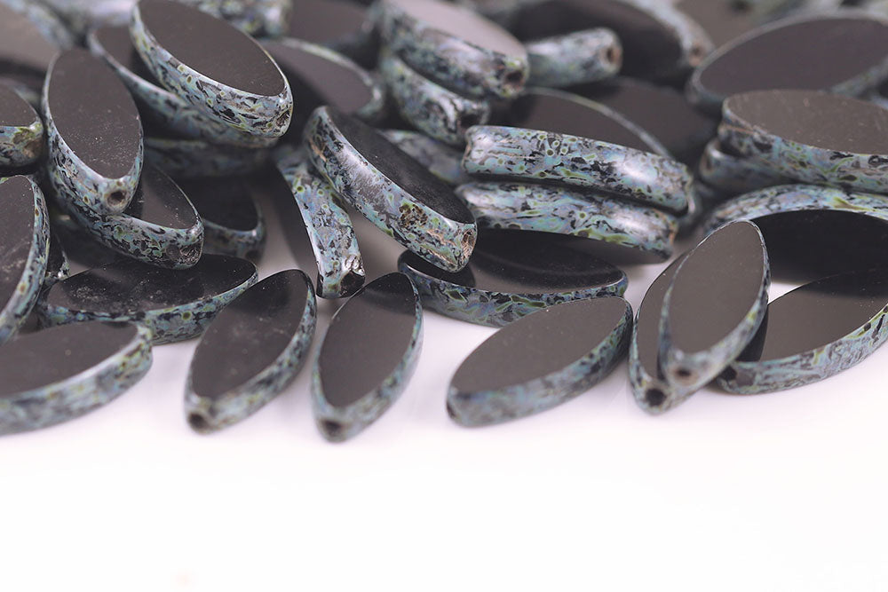 Ship 18×7mm Black Travertine 1-Hole Czech Beads