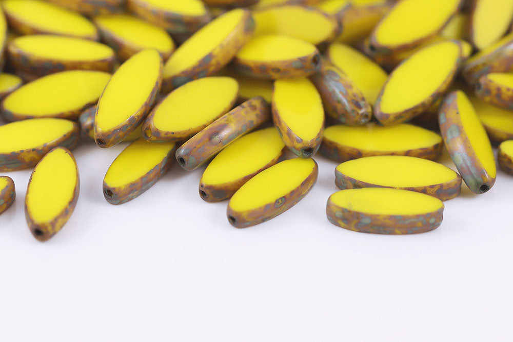 Ship 18×7mm 1-Hole Opaque Lemon Travertine Czech Beads