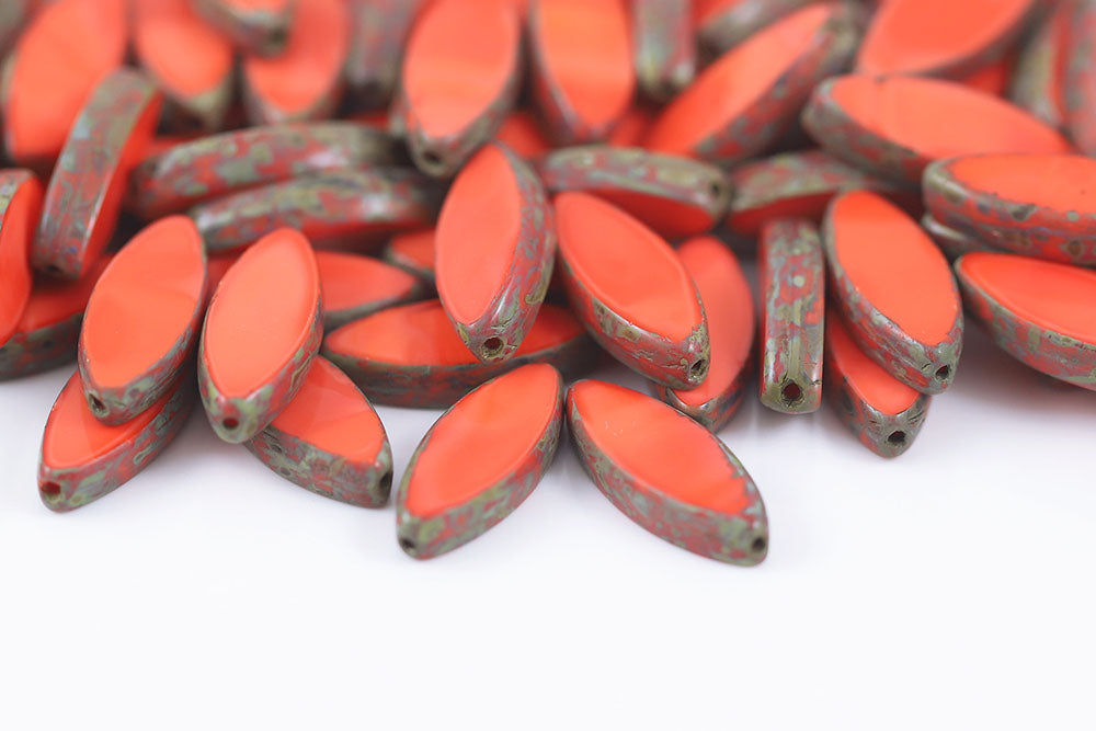 Ship 18×7mm 1-Hole Opaque Red Travertine Czech Beads