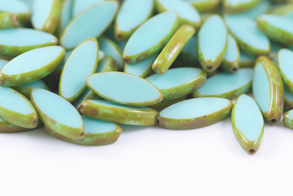 Ship 18×7mm 1-Hole Opaque Turquoise Lt.Green Travertine Czech Beads