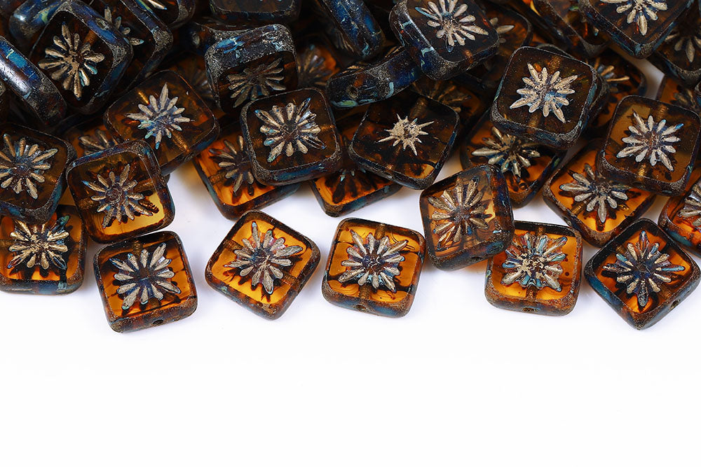 Squared Kiwi 10×10mm Crystal Brown Finish 1-Hole Czech Beads