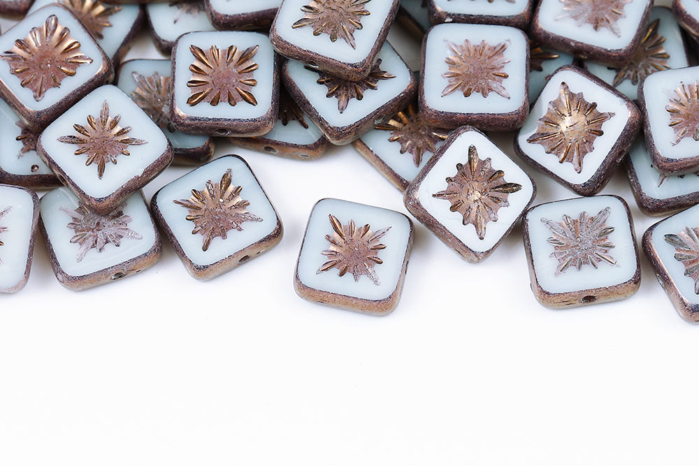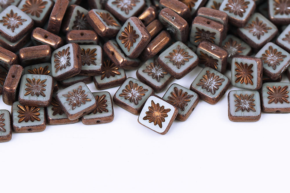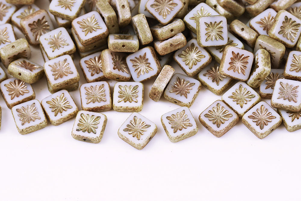 Squared Kiwi 10×10mm Off White Copper Finish 1-Hole Czech Beads