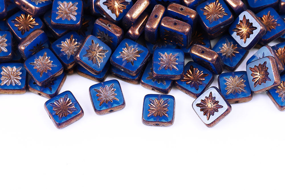 Squared Kiwi 10×10mm Chalk With Blue Purple 1-Hole Czech Beads