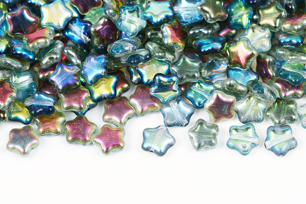 Star 8mm Crystal Green Rainbow Czech Glass Beads