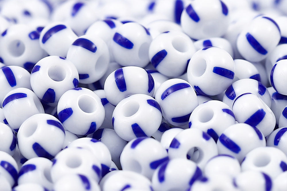 Preciosa Rocailles 6/0 Blue Stripes On White Col.03330