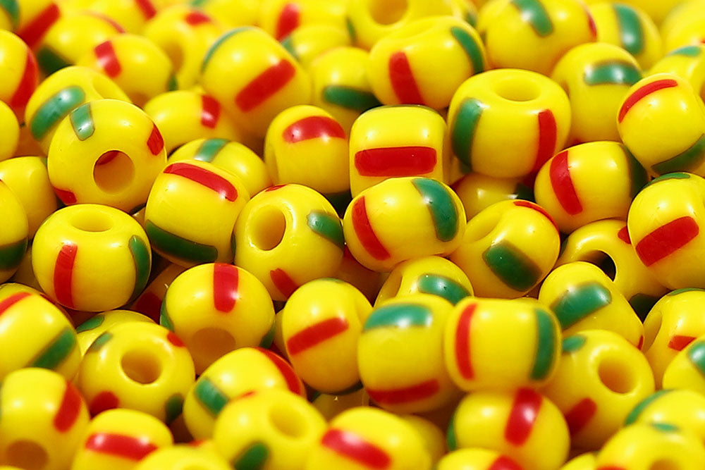 Preciosa Rocailles 6/0 Red Green Stripes On Yellow Col.83590