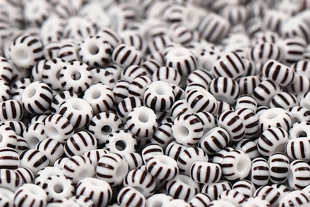 Preciosa Rocailles 8/0 Black Stripes On White Col.03591