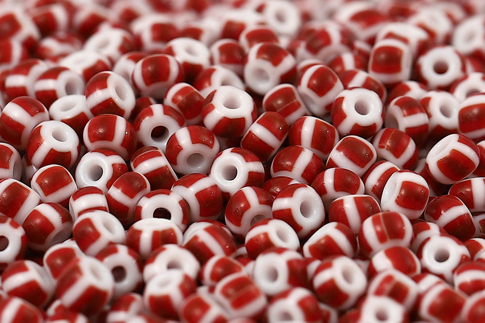 Preciosa Rocailles 8/0 Brown&Red Stripes On White Col.03910