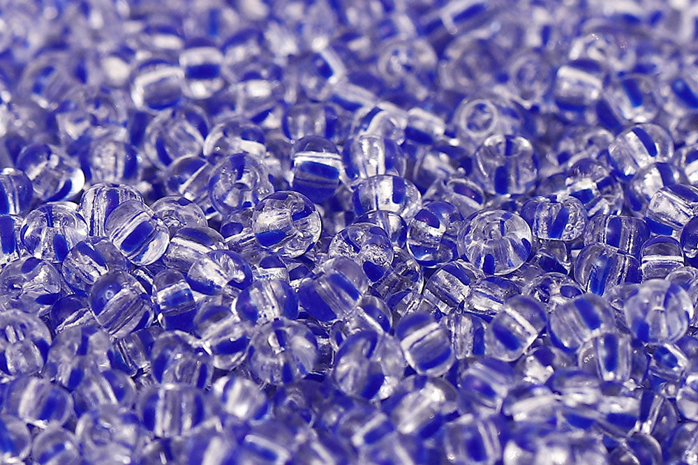 Preciosa Rocailles 8/0 Blue Stripes On Crystal Col.00491