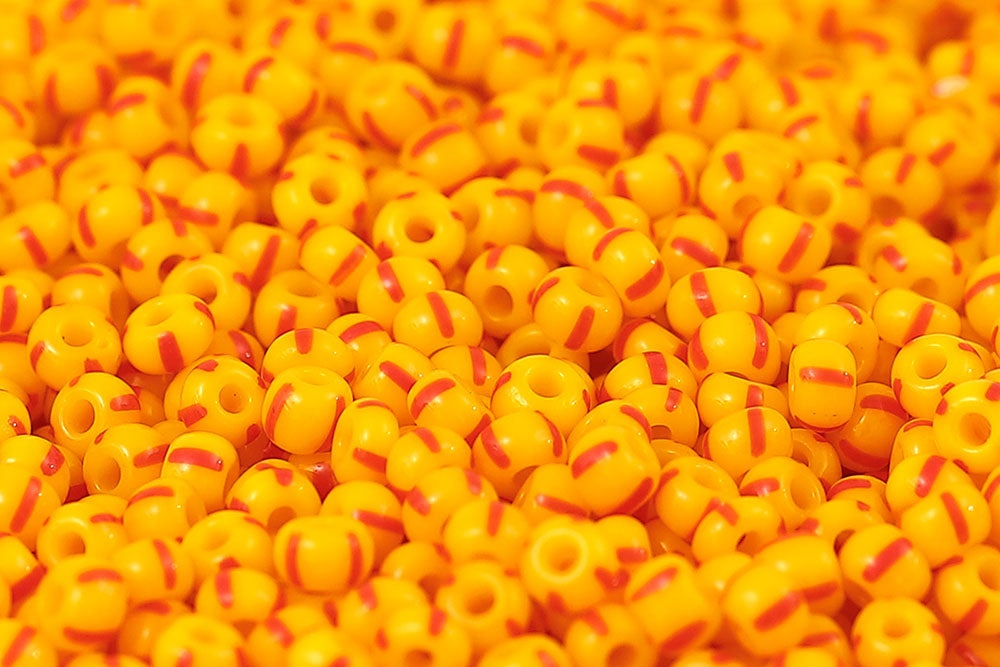 Preciosa Rocailles 8/0 Red Stripes On Yellow Col.83910