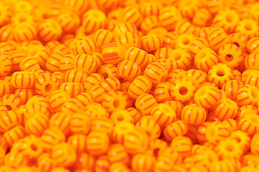 Preciosa Rocailles 8/0 Black&Red Stripes On Yellow Col.83950