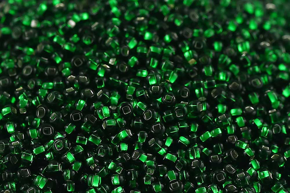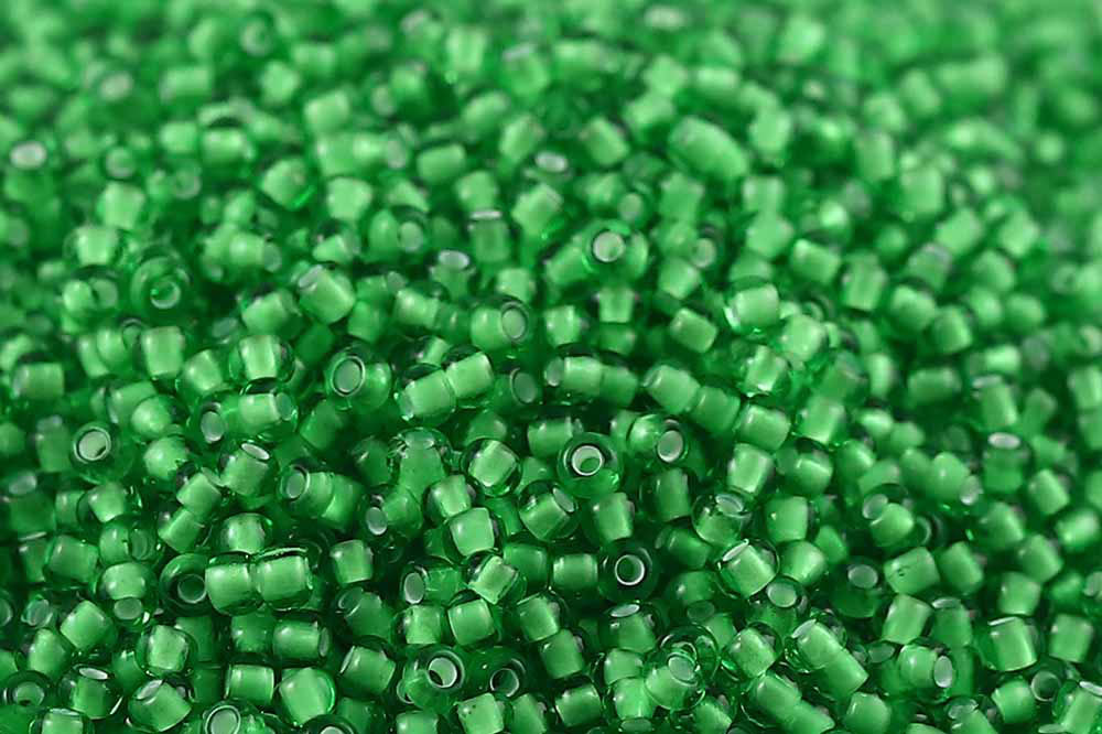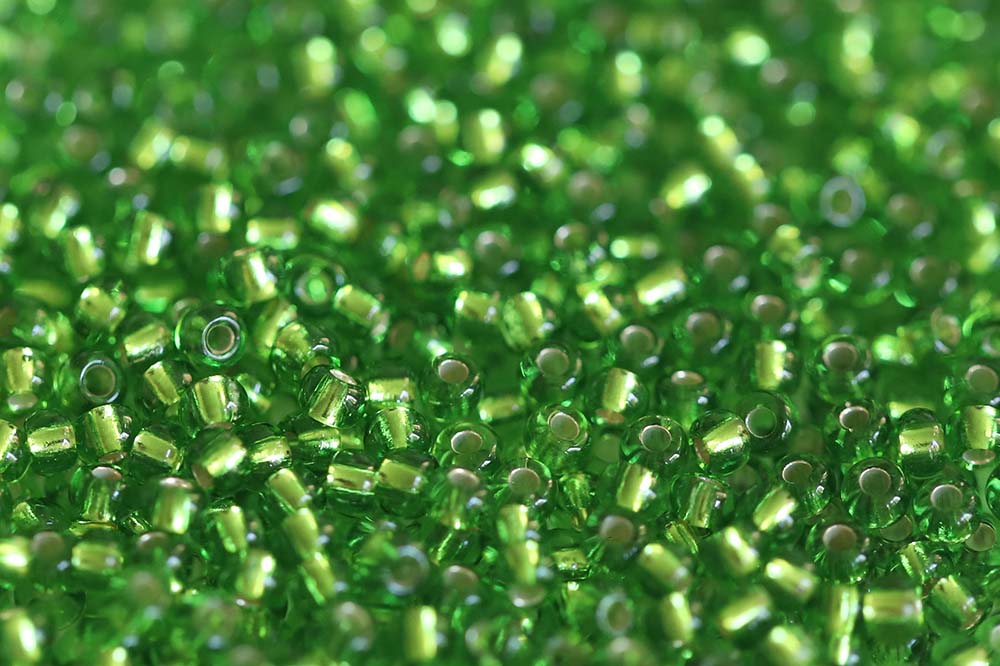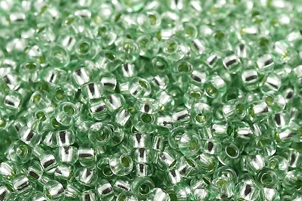 Preciosa Rocailles 11/0 Transparent Medium Green Silver Lined col.57060