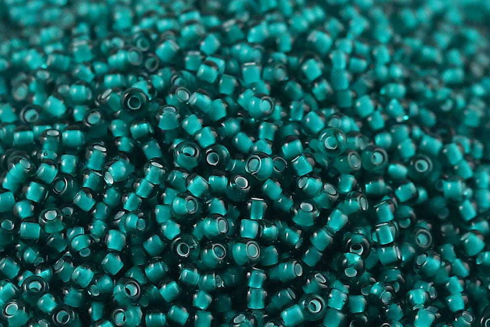 Preciosa Rocailles 11/0 Transparent Teal Green White Lining col.55716