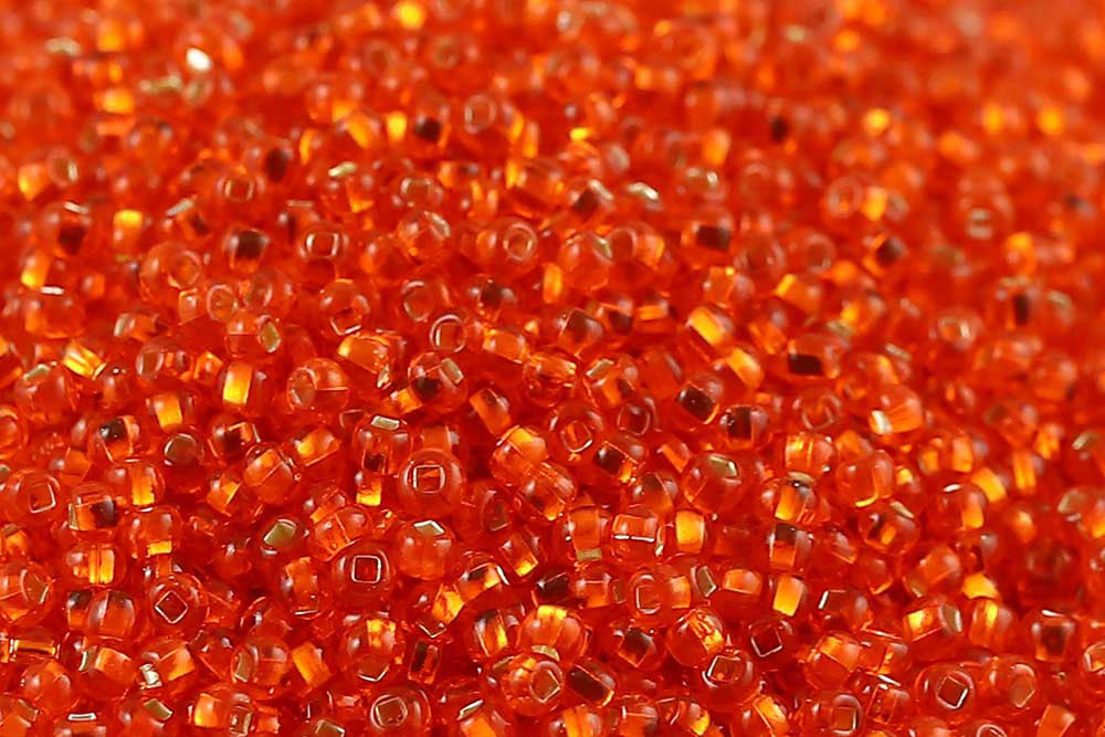 Preciosa Rocailles 11/0 Transparent Dark Orange Silver Lined col.97030