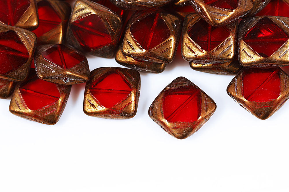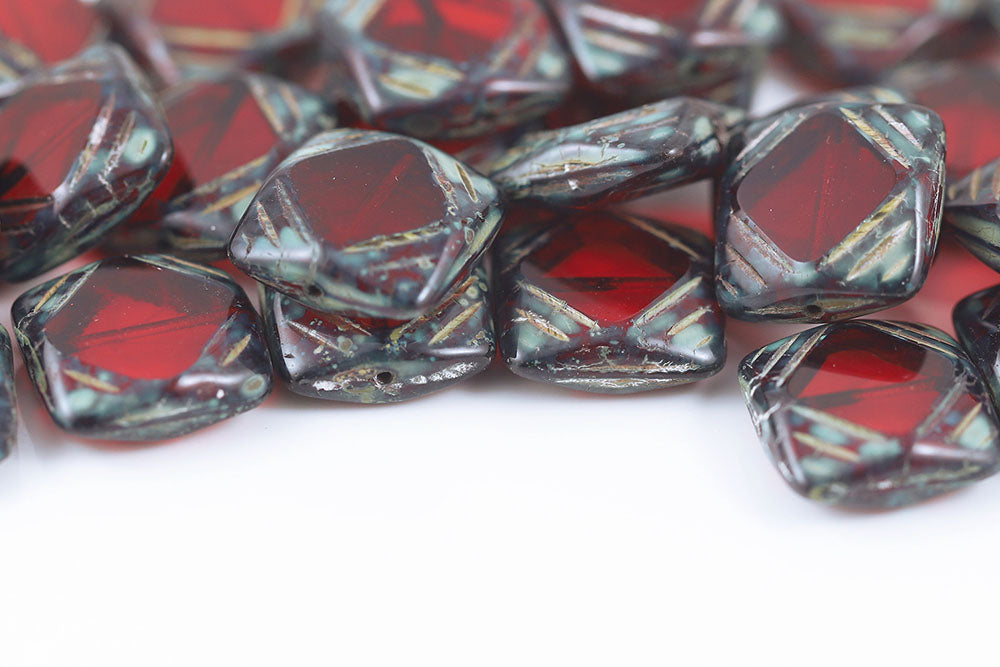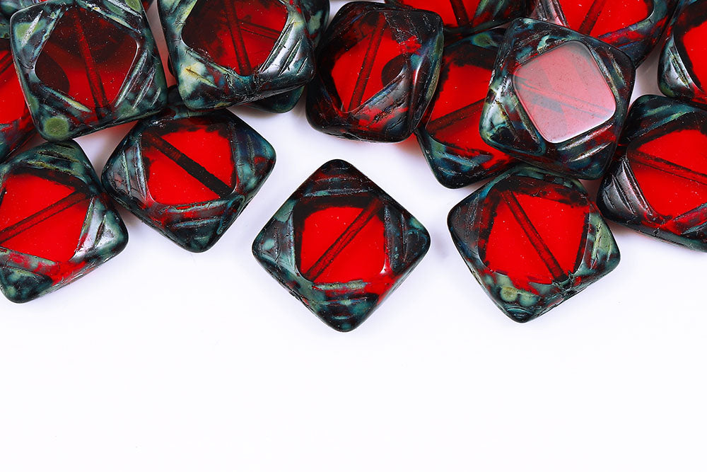 Window Designed 15×15mm Siam Travertine 1-Hole Czech Beads