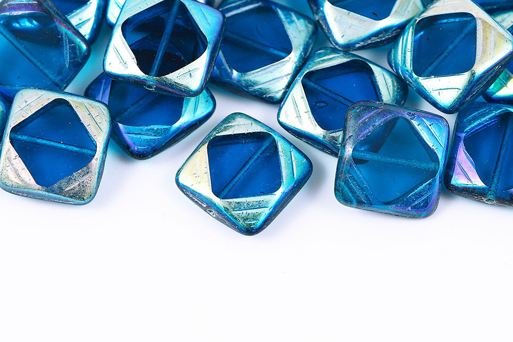 Window Designed 15×15mm Indicolite AB Full 1-Hole Czech Beads