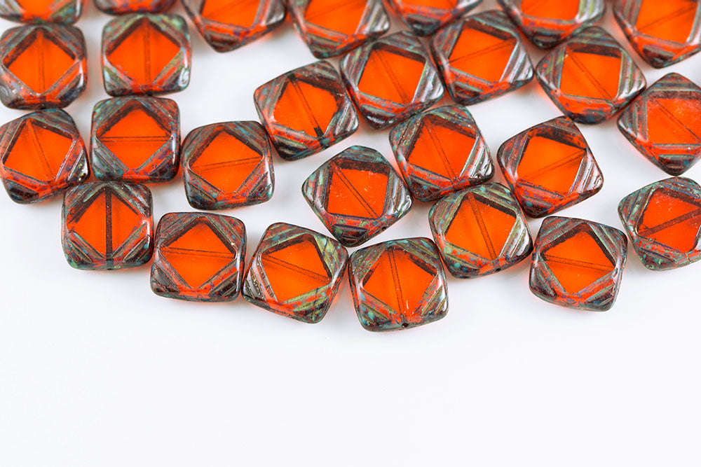 Window Designed 15×15mm Hyacinth Travertine 1-Hole Czech Beads