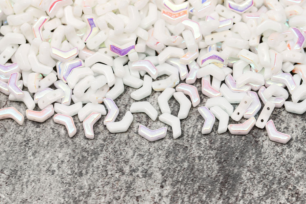 Arrow 8×5mm Chalk Ab 2-Hole Czech Beads