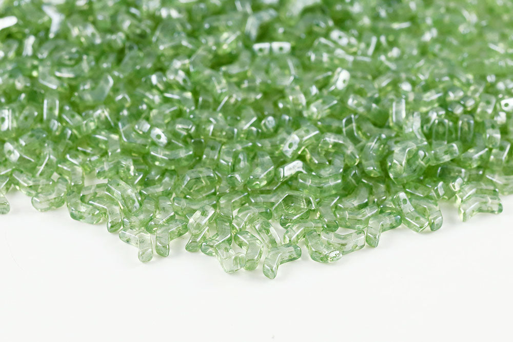 Arrow 8×5mm Crystal Green Luster 2-Hole Czech Beads