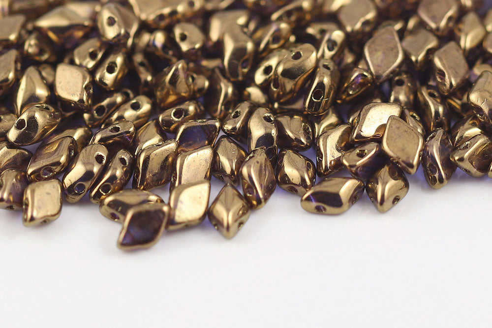Gemduo 8×5mm Crystal Gold Bronze 2-Hole Czech Beads