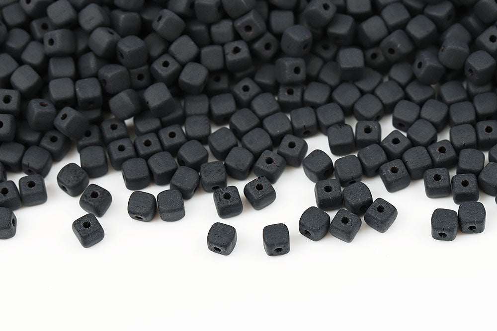 Cube 4×4mm Jet Matt 1-Hole Czech Glass Beads