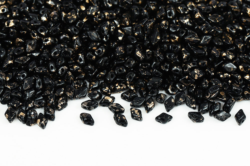 MiniGemduo 6×4mm Jet Gold Splash 2-Hole Czech Beads