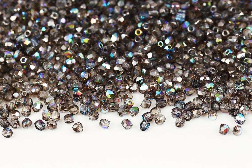 Czech Fire Polished 2.0mm Crystal Graphite Rainbow Round Beads