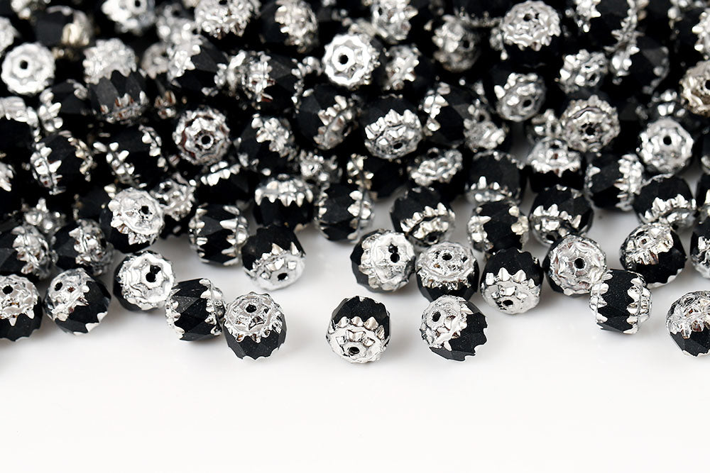 Firepolished Bols 6mm Jet Metallic Silver Finish Czech Beads
