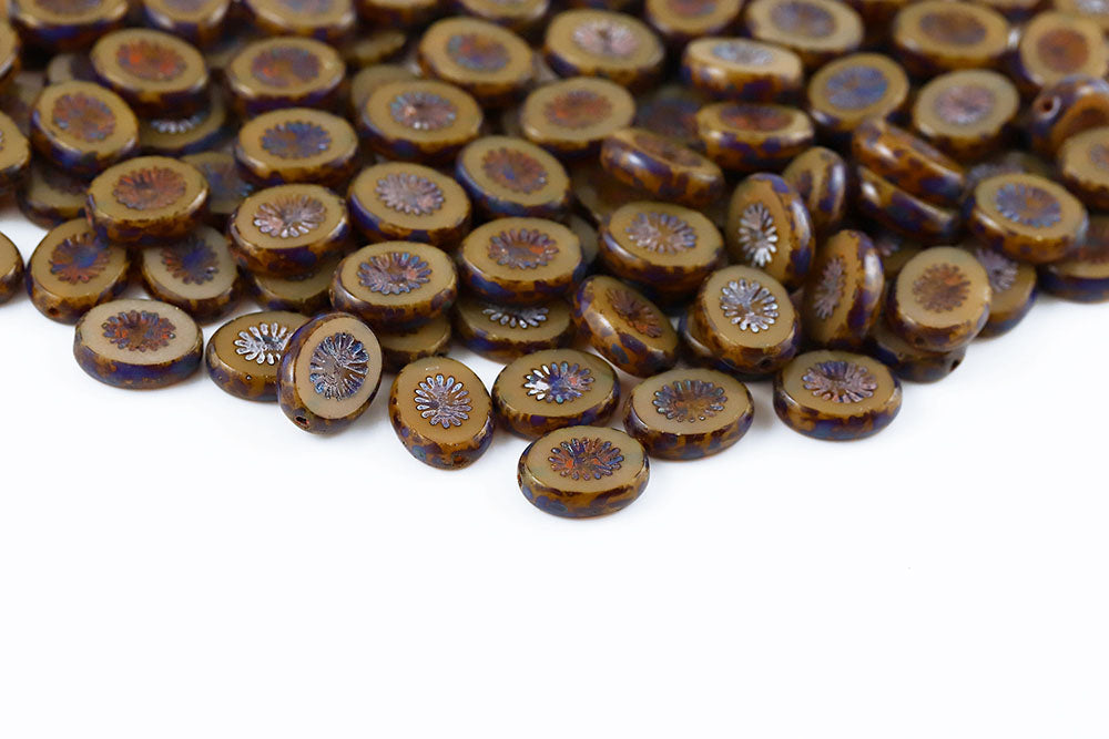 Kiwi 14×10mm Opal Brown Travertin 1-Hole Czech Beads
