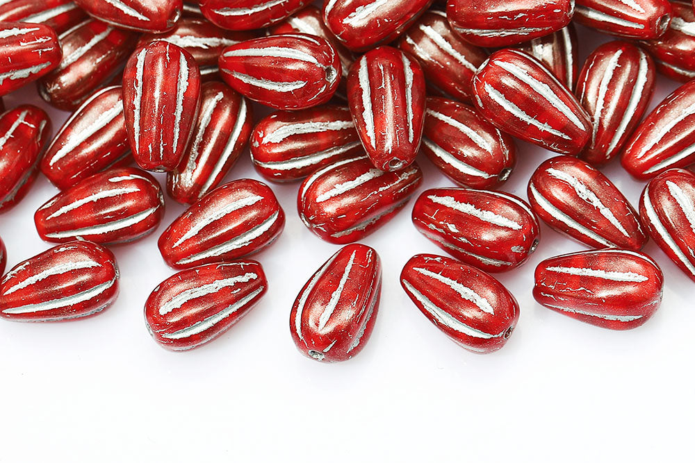 Melon Drops 13×8mm Opal Red With Silver Czech Beads